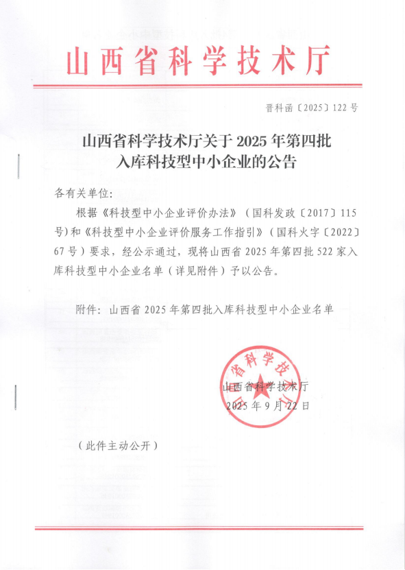 山西鑫创未来机械配件有限公司已获得国家科技型中心企业认证